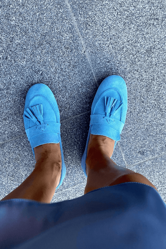 Mocassini blu con dettaglio punto patchwork in velluto slip on