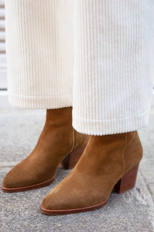 Stivaletti in pelle scamosciata con punta a punta e tacco spesso