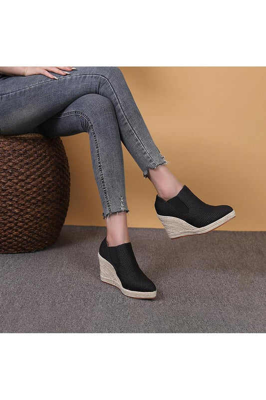 Solid Color Patchwork Pointed Toe Casual Wedge Heels