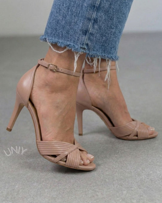 Elegant Blush Pink Ribbed Strappy Ankle Strap Stiletto Heels [Pre Order]