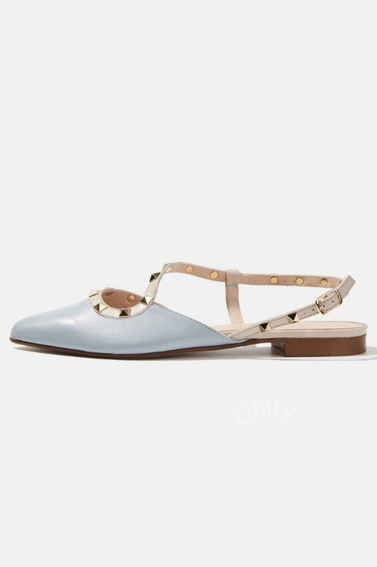 Light Blue Leather Pointed Toe Studded Slingback Flats [Pre Order]