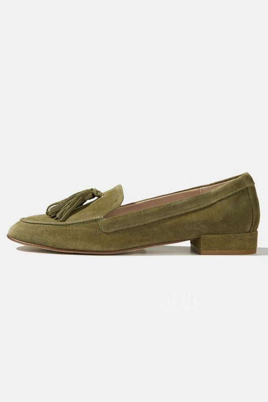 Chic Olive Green Faux Suede Tassel Slip-on Loafers [Pre Order]