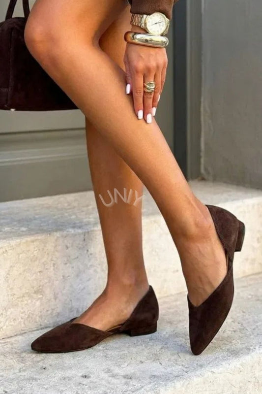 Minimalist Dark Brown Faux Suede Pointed Toe d'Orsay Flats [Pre Order]