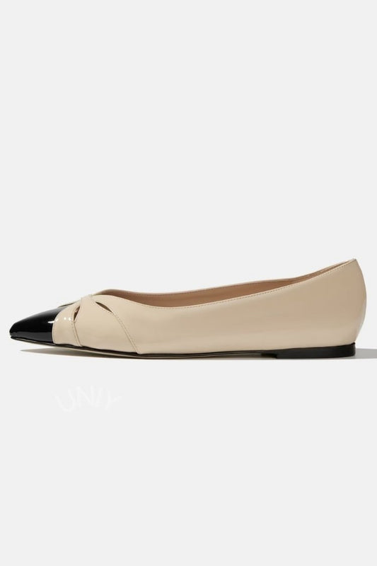 Chic Two-Tone Pointed Toe Cutout Slip-On Flats [Pre Order]