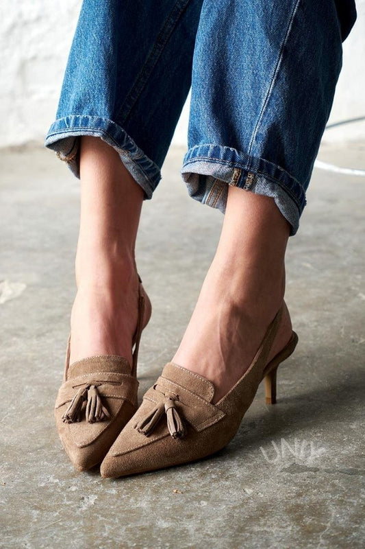 Elegant Camel Tassel Pointed Toe Slingback Stiletto Heels [Pre Order]