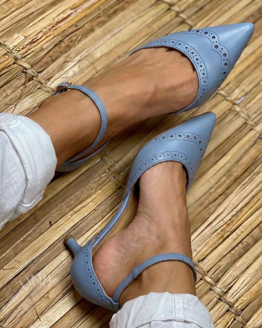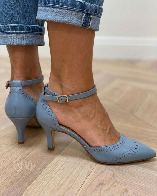 Blå spids tå brogue ankelrem kittenhæle [Forudbestilling]