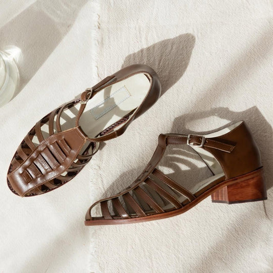 Spids Tå Læder Fiskersandaler med Remme og Ankelspænde [Forudbestilling]
