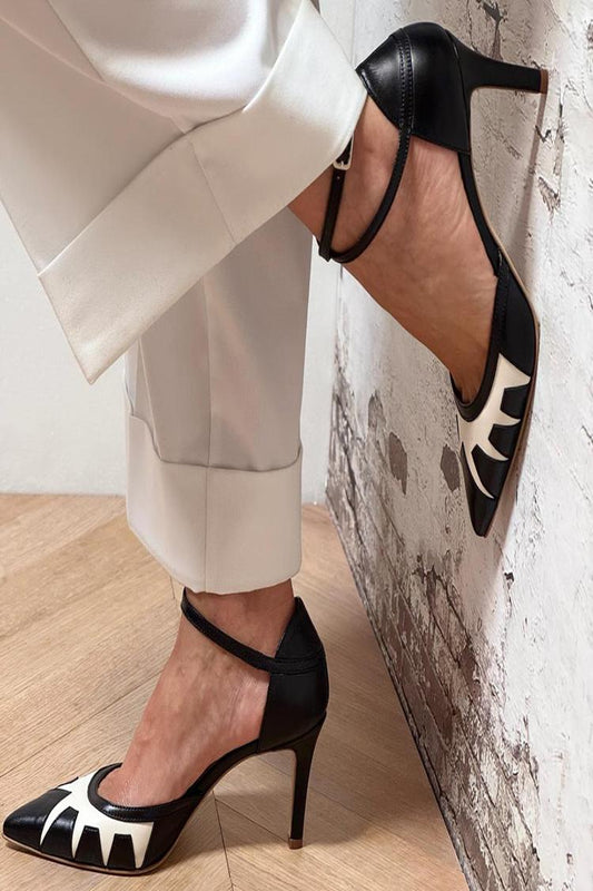 Colorblock Kreuzriemen Schnalle Spitz Zehen Schwarze Stiletto Absätze [Vorbestellung]