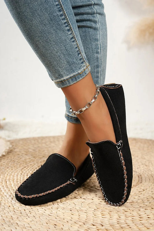 Einfarbige Slipper mit runder Zehenpartie und Nahtdetail
