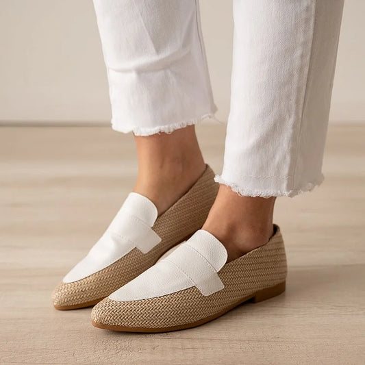 Beigefarbene Loafer mit gewebtem Blockabsatz und spitzer Zehenpartie [Pre Order]