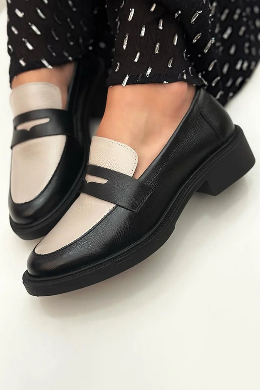 Rundspitz Colorblock Klobiger Schwarzer Absatz Loafer [Vorbestellung]