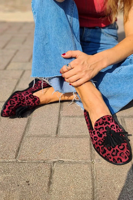 Spitz zulaufende Patchwork-Loafer mit Leopardenmuster und fuchsiafarbenen Zehen [Vorbestellung]