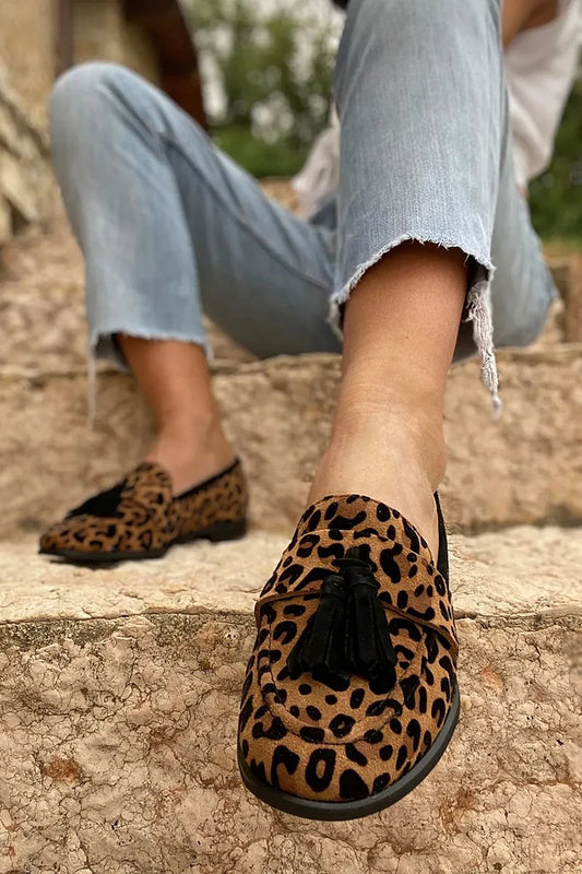 Leoparden-Quasten Licht Dekor Rund Zehen Print Braune Loafers [Vorbestellung]