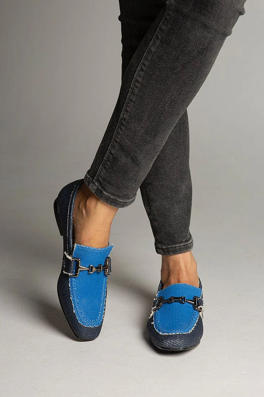 Blaue Metall-Schnalle Quadratische Zehen Colorblock Loafer [Vorbestellung]