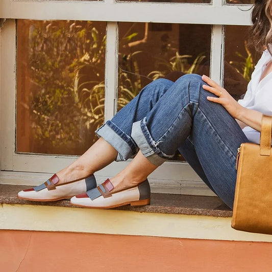 Loafers mit quadratischer Spitze und Steppdetail in Beige Patchwork [Vorbestellung]