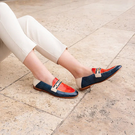 Glamouröse Krokodil Colorblock Print Metall Schnalle Navy Loafers [Vorbestellung]