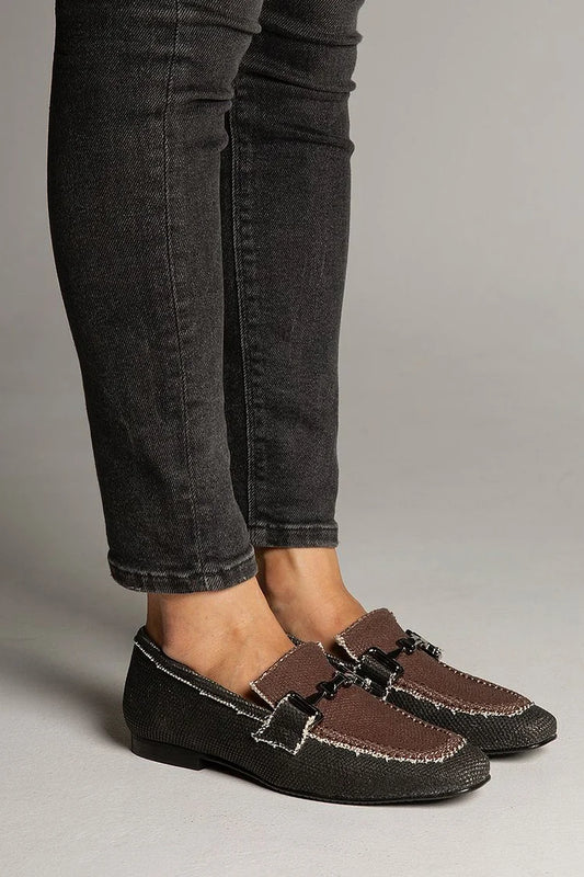 Atmungsaktive Loafers mit rundem Zehenbereich in brauner Colorblock-Patchwork-Optik [Vorbestellung]