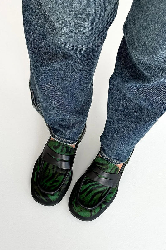 Stilvolle Loafers mit Zebramuster, Patchwork und rundem Zehenbereich in Grün [Vorbestellung]
