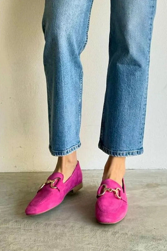 Lässige Fuchsia-Loafer mit runder Zehenpartie und Metallic-Schnallendekor