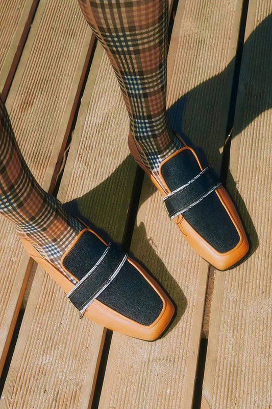 Verfeinerte Mokassins mit quadratischer Spitze und Kontrastpaneel aus Kunstwildleder [Vorbestellung]