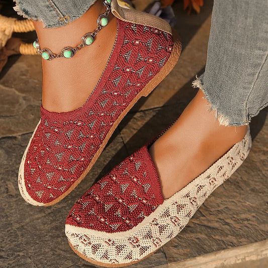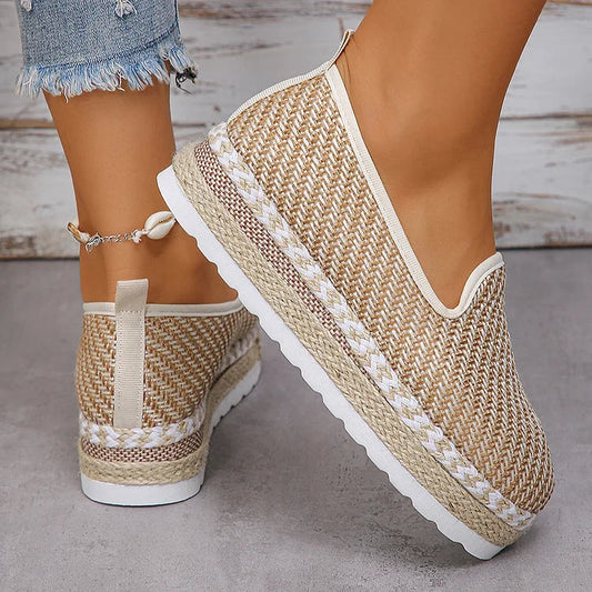 Lässige leichte Plateau-Espadrille-Slipper mit gewebtem Muster