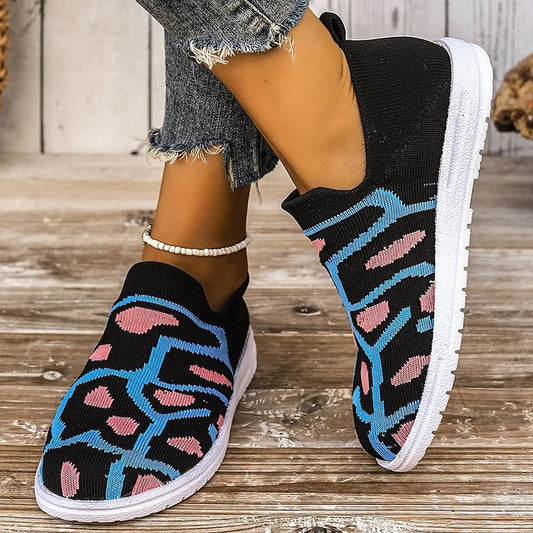 Leichte Slipper-Schuhe zum Hineinschlüpfen im Farbblock-Design mit Leopardenmuster