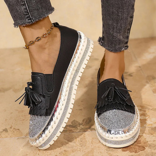 Mit Strass verzierte Quasten, Zierstich-Loafer mit runder Zehenpartie