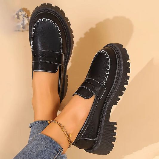 Lässige Loafer mit Patchwork-Muster und runder Zehenpartie und klobigem Absatz