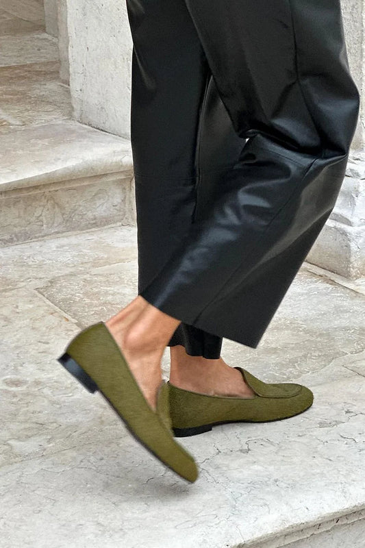 Echte Leder Haircalf Rundspitzen Slipper [Vorbestellung]
