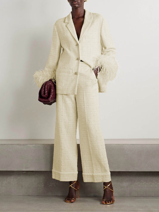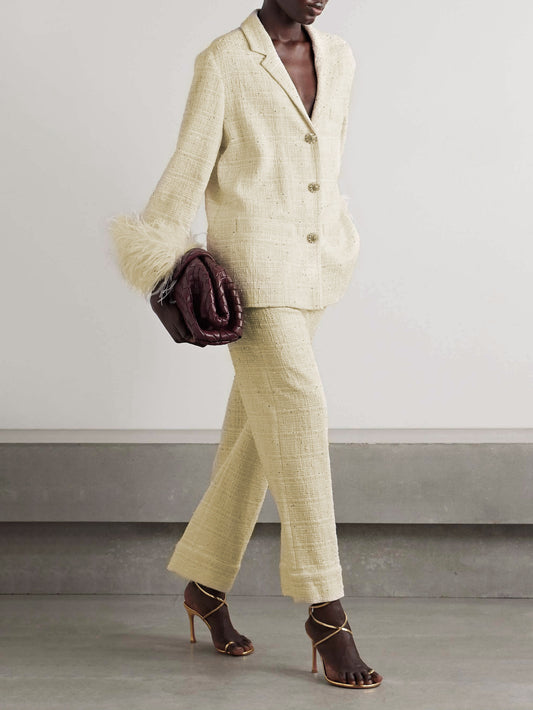 Eleganter, verzierter Tweed-Blazer mit Federbesatz