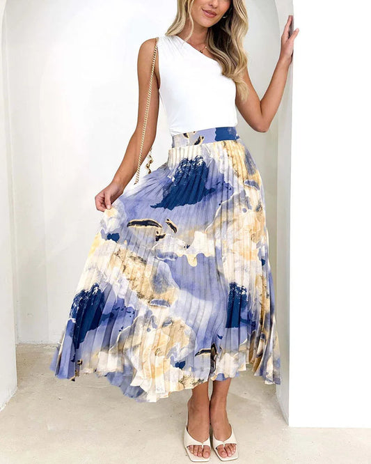 Charmanter hochwertiger bedruckter gemalter plissierter Öl A-Linien plissierter Rock