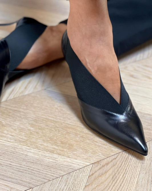 Elegante, zweifarbige Stiletto-Absätze aus Ledermischung mit V-Schnitt [Pre Order]