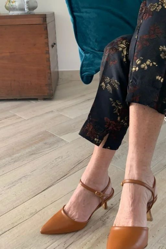 Spitz zulaufende Vintage-Heels aus hellbraunem Leder mit T-Riemen [Pre Order]