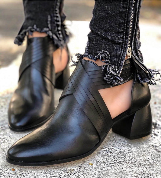 Spitz zulaufende Slipper mit überkreuzten Riemen und Ausschnitt und Absatz [Pre Order]