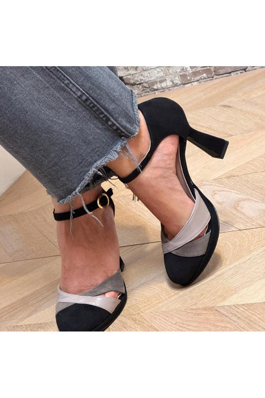 Farblich abgestimmte Kreuzriemen mit Ausschnitt und Schnalle Schwarze hohe Blockabsätze [Vorbestellung]