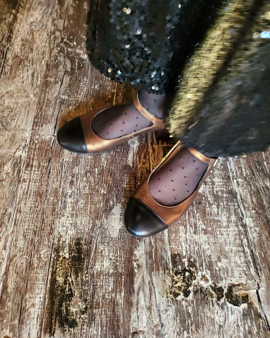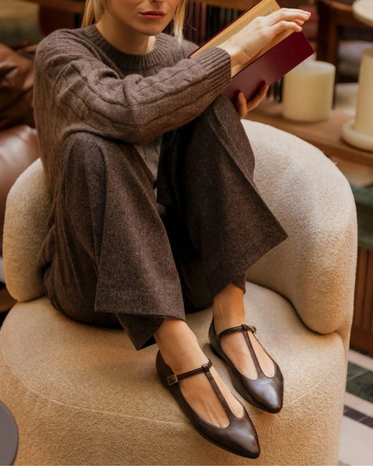 Braune Leder-Ballettschuhe im Vintage-Stil mit spitz zulaufenden Zehen und Kreuzriemen [Vorbestellung]