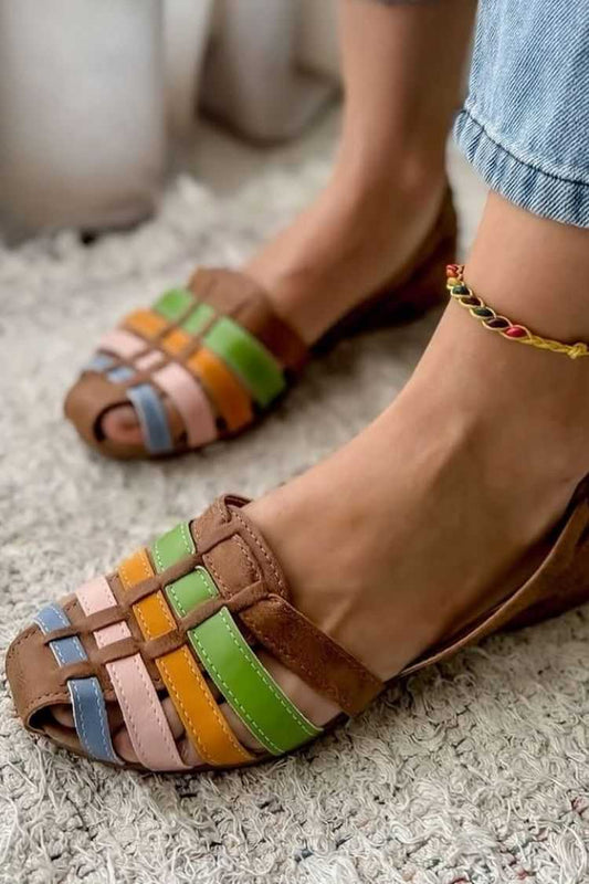 Wildleder gewellte Colorblock Knöchelriemen offene Zehen Sandalen