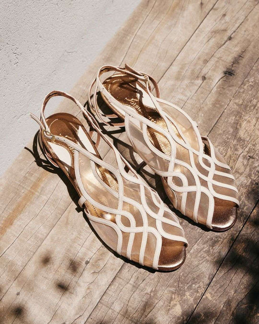 Goldene Sandalen mit ausgeschnittenem Knöchelriemen und rundem Zehenbereich [Vorbestellung]