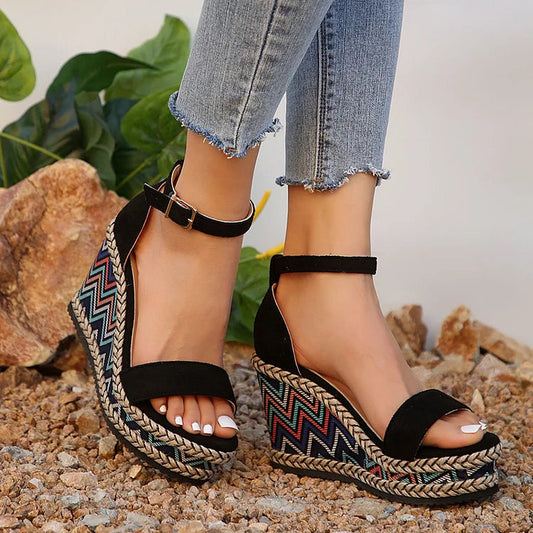 Hohlraum-Patchwork Rundzehen Freizeit-Wedge-Sandalen