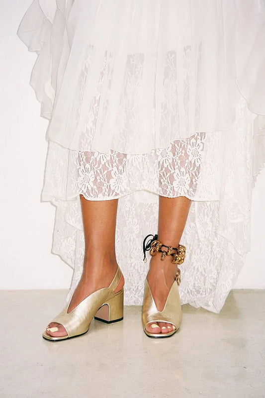 Metallic schimmernde ausgeschnittene spitze Zehen Goldsandalen [Vorbestellung]
