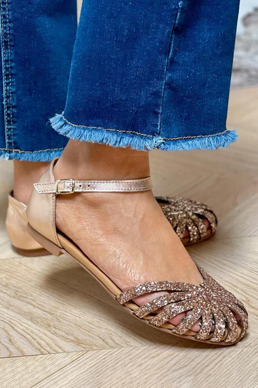 Glitzernde Ausgeschnittene Runde Zehen Champagner Sandalen [Vorbestellung]