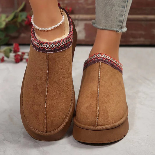 Flauschige Schneestiefel aus Kunstpelz mit runder Zehenpartie zum Anziehen