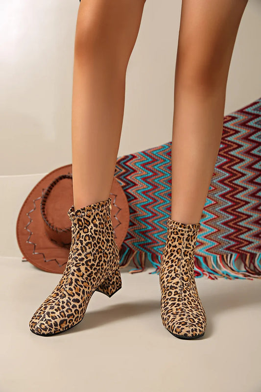 Leopardenmuster Reißverschluss Rundzehen Chunky Heel Mittelhohe Stiefel