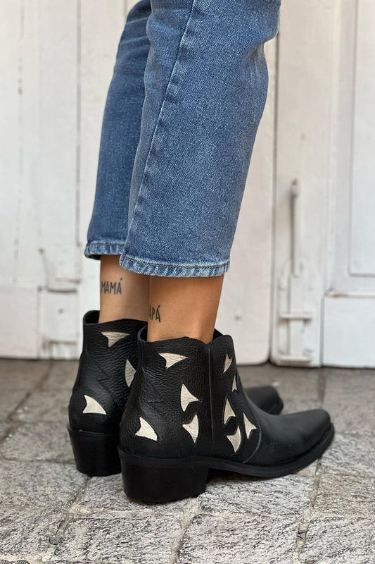 Gewebte Patchwork-Stiefeletten mit runder Zehenpartie und Reißverschluss in Schwarz [Pre Order]