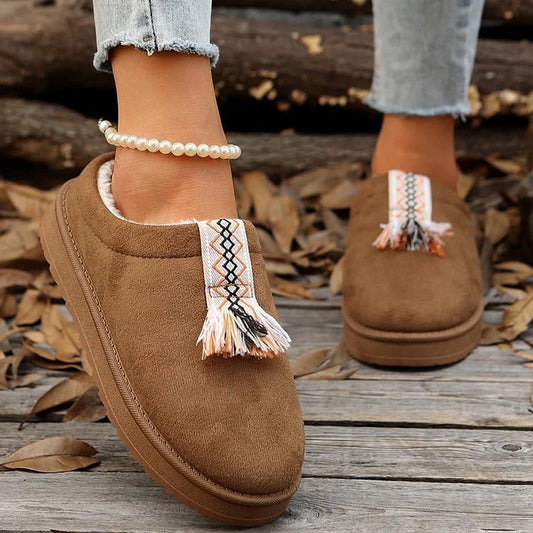 Lässige Schneestiefel mit Patchwork-Fransenbesatz und runder Zehenpartie