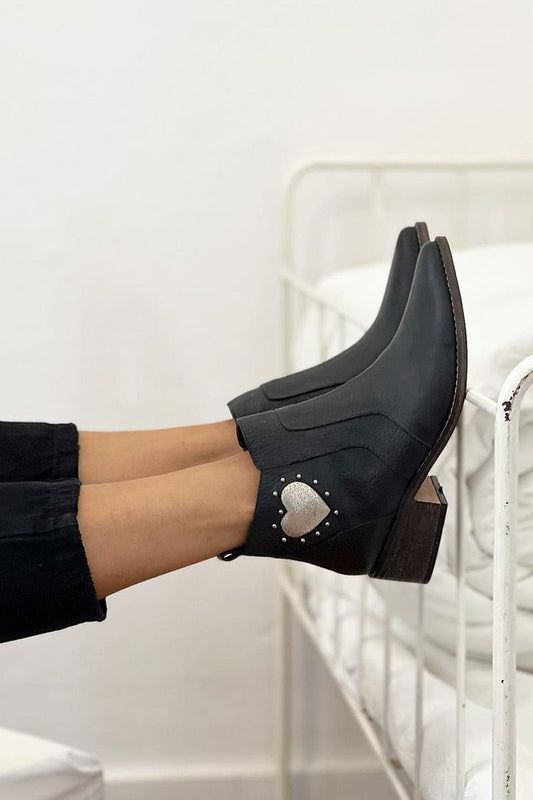 Colorblock-Herz-Metallnieten, spitze Zehenpartie, schwarze Stiefeletten [Pre Order]