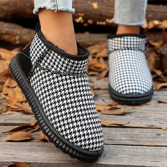 Patchwork-Schneestiefel mit Hahnentrittmuster und runder Zehenpartie