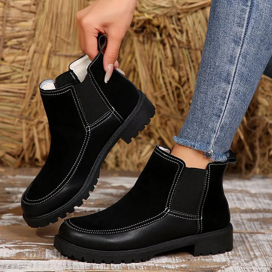 Stiefeletten zum Anziehen mit Patchwork-Stichdetail und runder Zehenpartie und klobigem Absatz