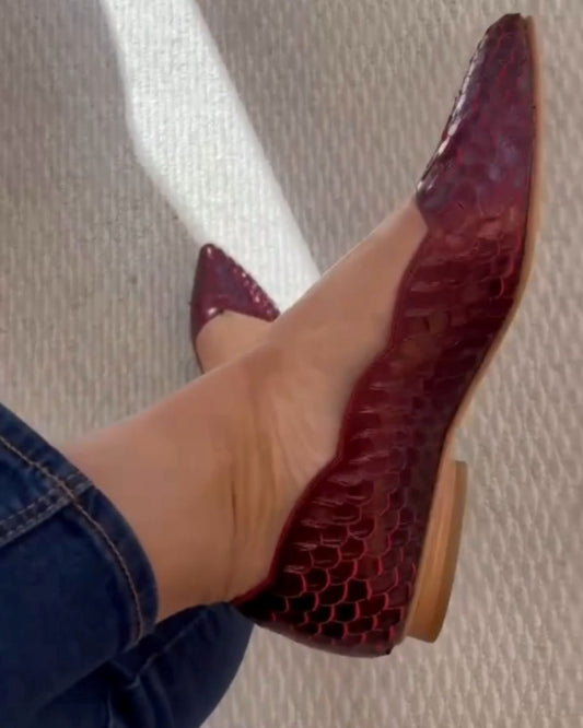 Präzise spitze Ballerinas mit geprägtem Krokodilmuster [Vorbestellung]