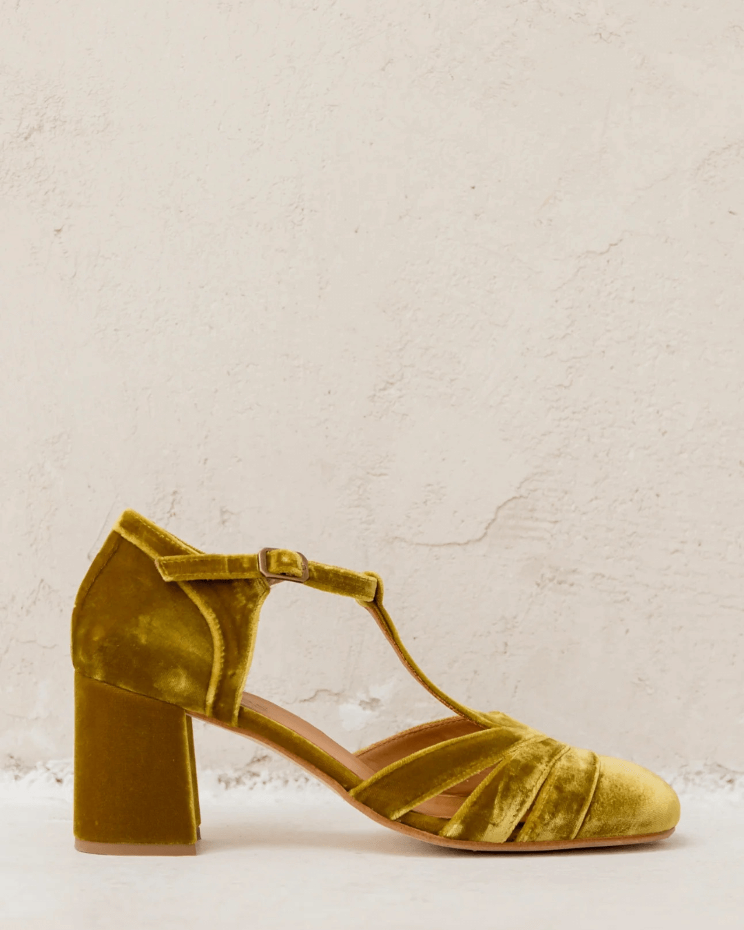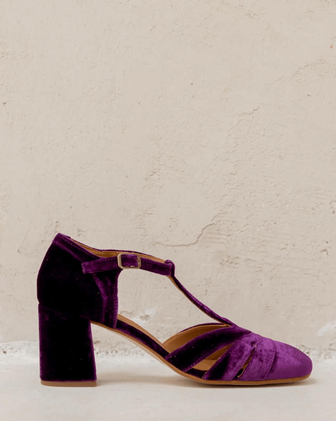Ausgehöhlte T-Riemen Schnalle Samt Klobige Absätze